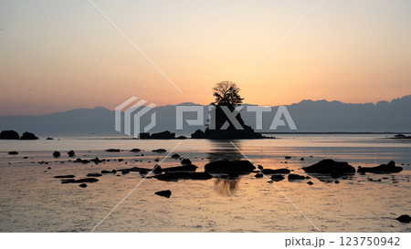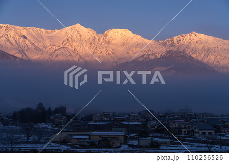《長野県》雪景色の北アルプスのモルゲンロート・冬の白馬村