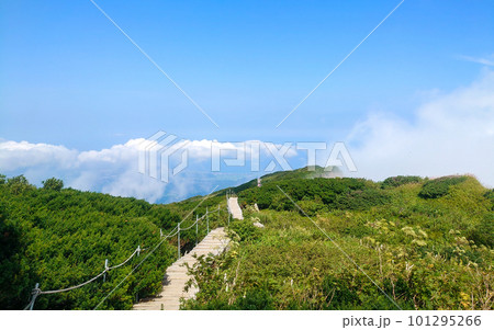 鳥取県 大山(弥山)頂上付近の木道とダイセンキャラボク