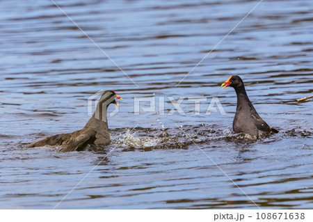 Dusky Moorhen, Gallinula tenebrosa, on water