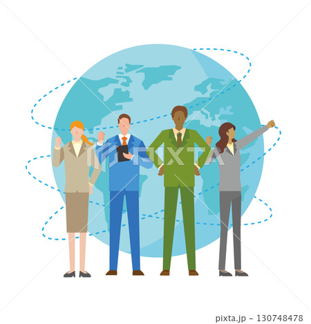 地球と手をつないでいる色々な世代の人物 地球環境の保護や平和のイメージ