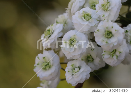 日本の春の公園に咲く八重咲きのユキヤナギの花
