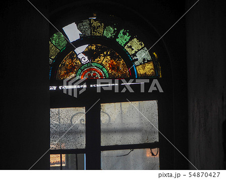 ティラナ、アルバニアの廃教会にあるステンドグラス