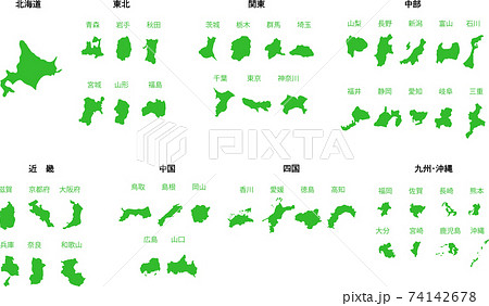 日本地図セット・県境界線有り&無し(分割可能・47都道府県)