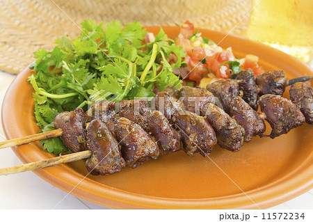BBQ Chicken Heart - Grilled chicken hearts on skewers with salsa