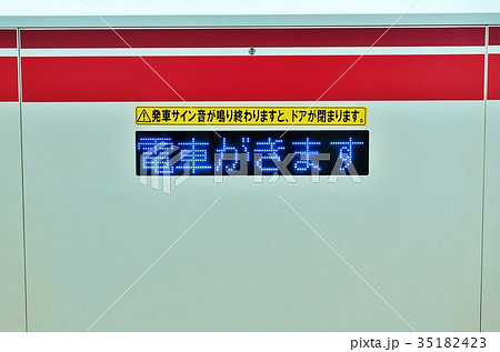 公共交通安全イメージ・都営地下鉄ホームドアの電車接近通知「電車が来ます」・縦位置