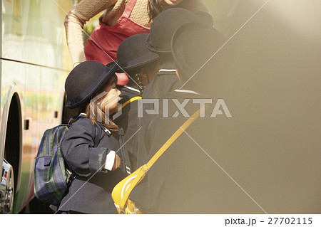 通園バスに乗る園児たち