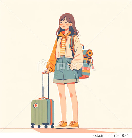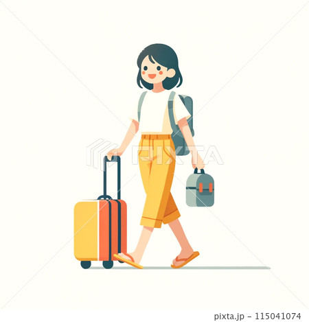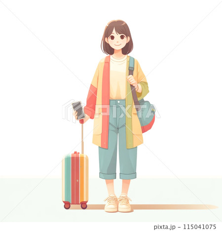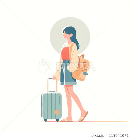 旅行に出かける女性 日本人 女性 旅行 トラベル 淡い色 パステルカラー スーツケース かわいい