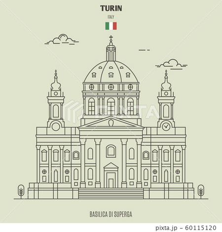 Italy, Turin, Residences Of The Royal House Of Savoy flat landmarks vector illustration. Italy
