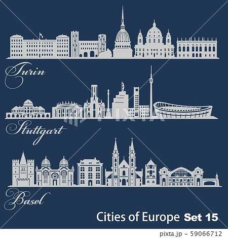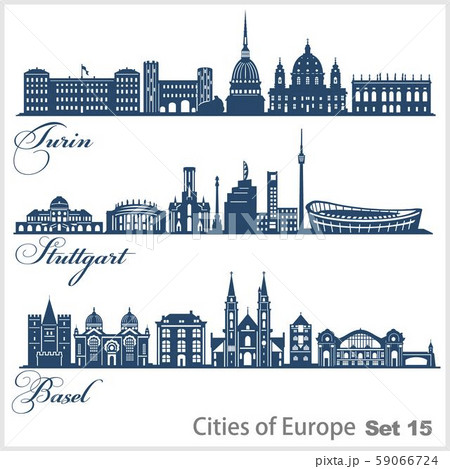 City in Europe - Turin, Stuttgart, Basel. Detailed architecture. Trendy vector illustration.