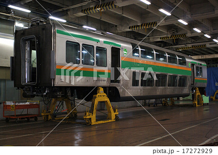 検査のために台車を外されたサロE231-1089