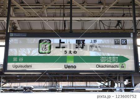 常磐線 上野駅(JJ01)の駅名表示板(東京都台東区)