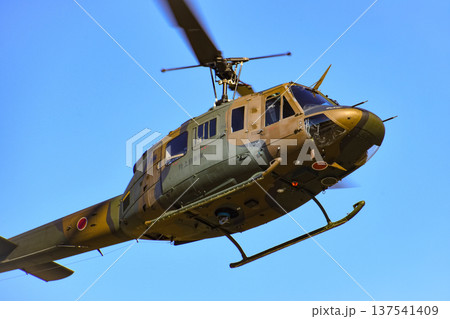 飛行する陸上自衛隊のヘリコプター UH-1J