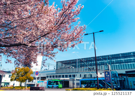 桜咲く高架化工事中の東村山駅東口駅前 2025.04 b-4 ライトカラー