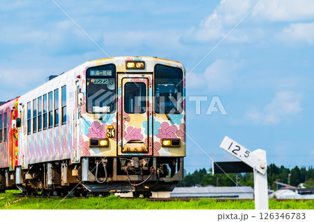 山形鉄道フラワー長井線 新緑の野を駆け抜ける列車(白兎-羽前成田)