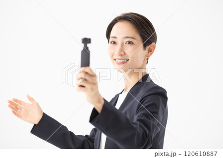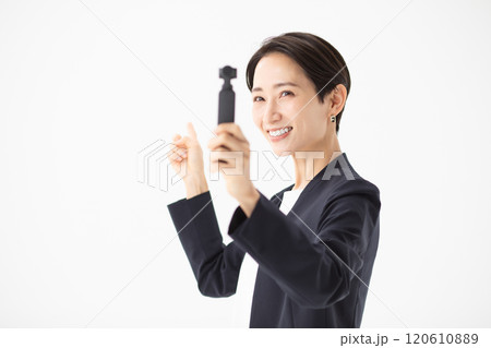 動画配信者の女性イメージ (写真素材)