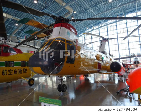 展示中の航空自衛隊の救難ヘリコプターV-107A