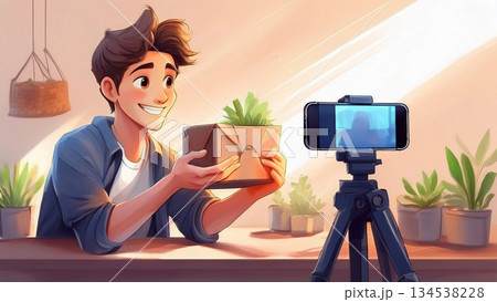 動画配信者の女性イメージ (写真素材)