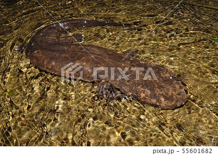 上から見た苔の上のヒガシヒダサンショウウオ雄