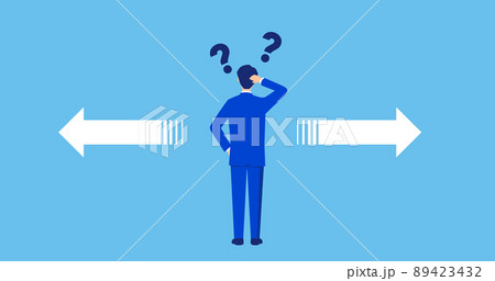 選択に迷うビジネスマンのイラスト、矢印とクエスチョンマーク、ベクター