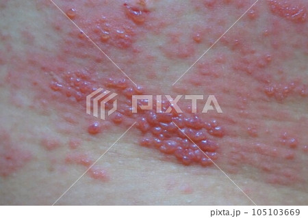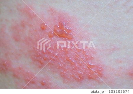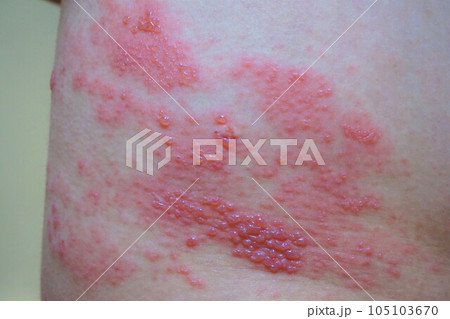 Shingles, Zoster or Herpes Zoster symptoms on arm.