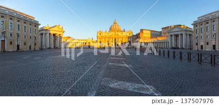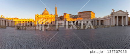 Saint Peter Square panorama at dawn in Rome, Italy