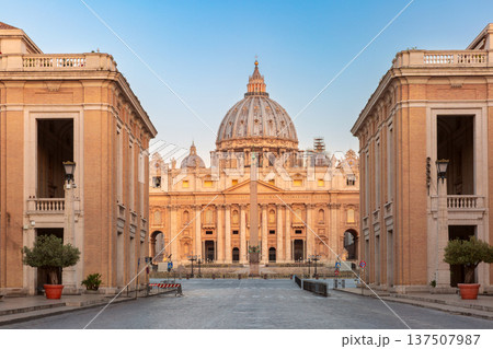 Sunset view of St. Peter's Basilica in Vatican