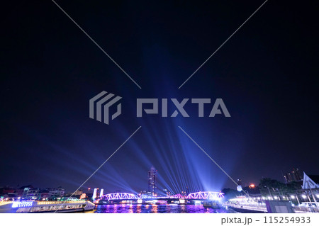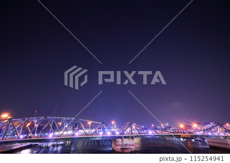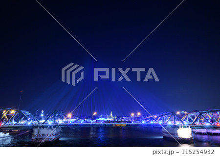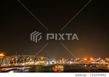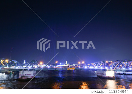 タイ・バンコクのラーマ1世橋(メモリアル・ブリッジ)のライトアップ