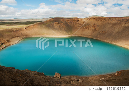 Volcanic lake with turquoise water in Iceland