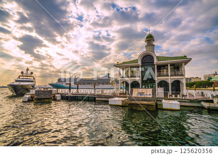 日本の横浜都市景観ノルウェージャン・スピリットやぷかりさん橋などを望む