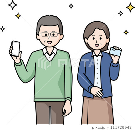 シニア割 スマホとカードを持つ夫婦
