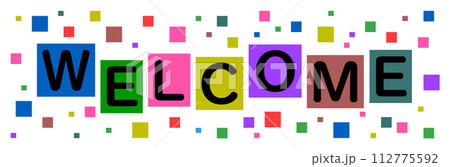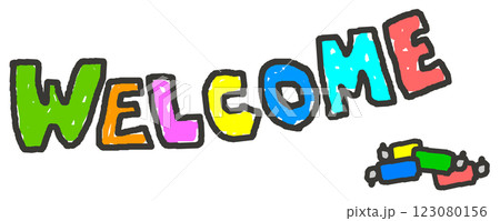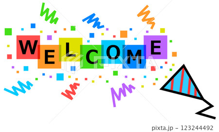 カラフルな文字で歓迎するWELCOMEの英語イラスト