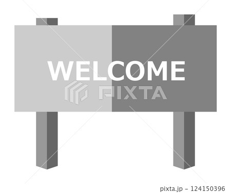英語で歓迎をする挨拶を記入した表示板のイラスト