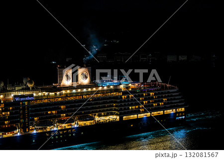 神戸港ポートターミナルに停泊中の、ホーランド・アメリカラインのクルーズ船「ウエステルダム」