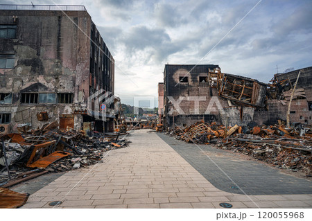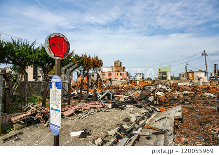 能登半島地震 朝市通り 河原田川川沿いの燃え残った瓦礫 輪島市