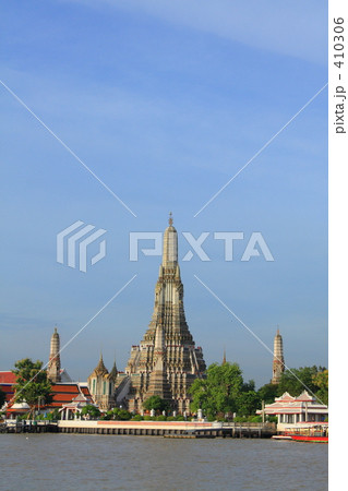 タイ バンコク ワット・アルン 船からの眺め 5月の晴れの日