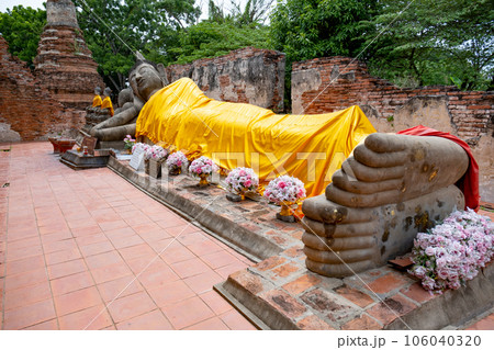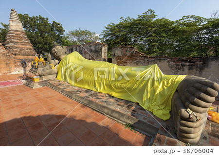 Reclining Buddha Image at Wat Phutthaisawan, an historic Thai Buddhist temple in Phra Nakhon Si Ayutthaya Province, Thailand. It is a part of Ayutthaya Historical Park