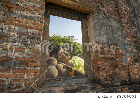 The ruins of sanctuary be enshrined reclining Buddha statue at Phutthaisawan Temple