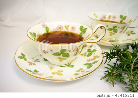 ローズマリーとティーカップに美味しい紅茶で くつろぎを