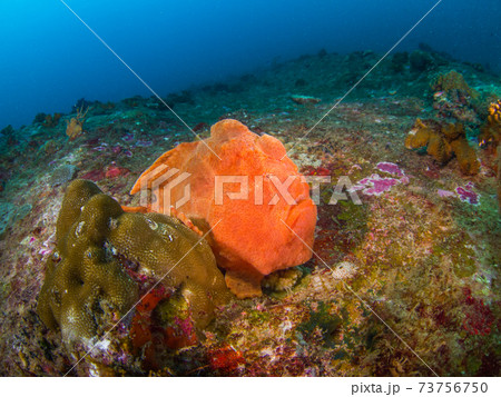 大きな岩の上に育つミズガメカイメン (シミラン諸島、タイ王国)