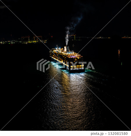 長崎港客船出港(Westerdam)女神大橋から夜景ライトアップ スクエア【長崎市】
