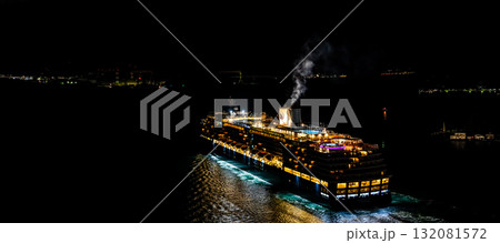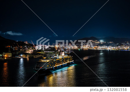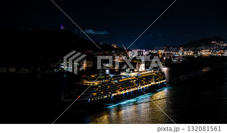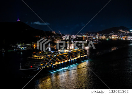 長崎港客船出港(Westerdam)女神大橋から夜景ライトアップ パノラマ【長崎市】