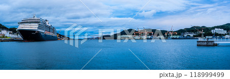 長崎港客船入港(Westerdam)水辺の森公園からの夕景 パノラマ【長崎市】