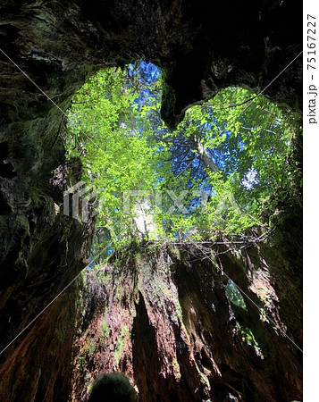 屋久島ウィルソン株の中から見上げたハート型の景色