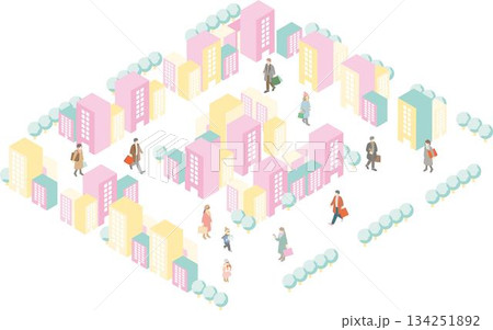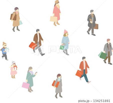都会の冬のライフスタイル、ショッピングと散策を楽しむ人々