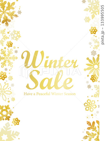 Winter Saleの文字入り・金色の雪の結晶フレーム背景(冬セール)