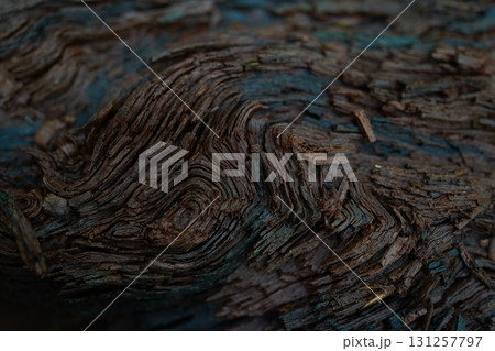 木の幹の複雑な年輪模様と質感のクローズアップ