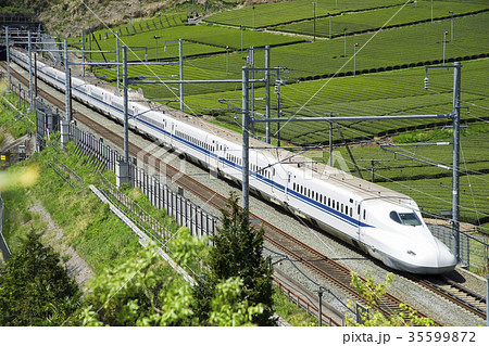 菊川の茶畑と新幹線