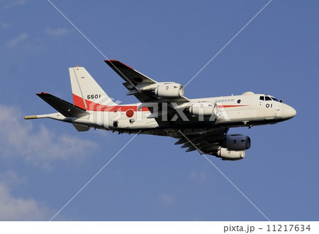 快晴の青空を飛行する海上自衛隊の国産ジェット哨戒実験機XP-1