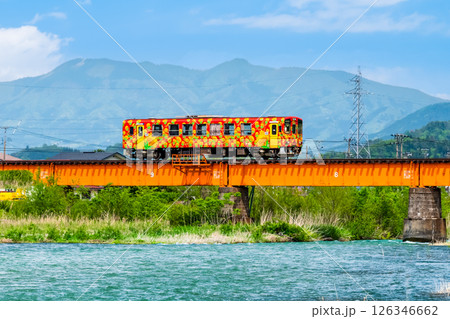 山形鉄道フラワー長井線 野川橋梁を渡る列車(あやめ公園-羽前成田)