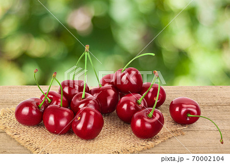 red sweet cherry on wooden table isolated on white background with clipping path and full depth of field